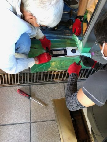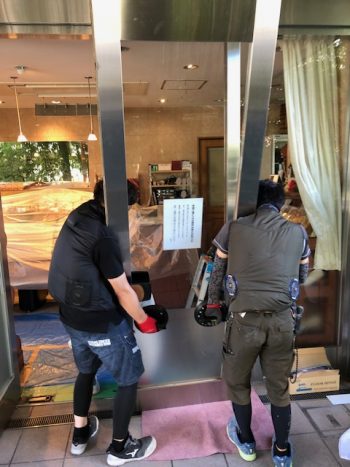 明榮メンテナンスです。今回はフロアヒンジ取替工事載せていきます